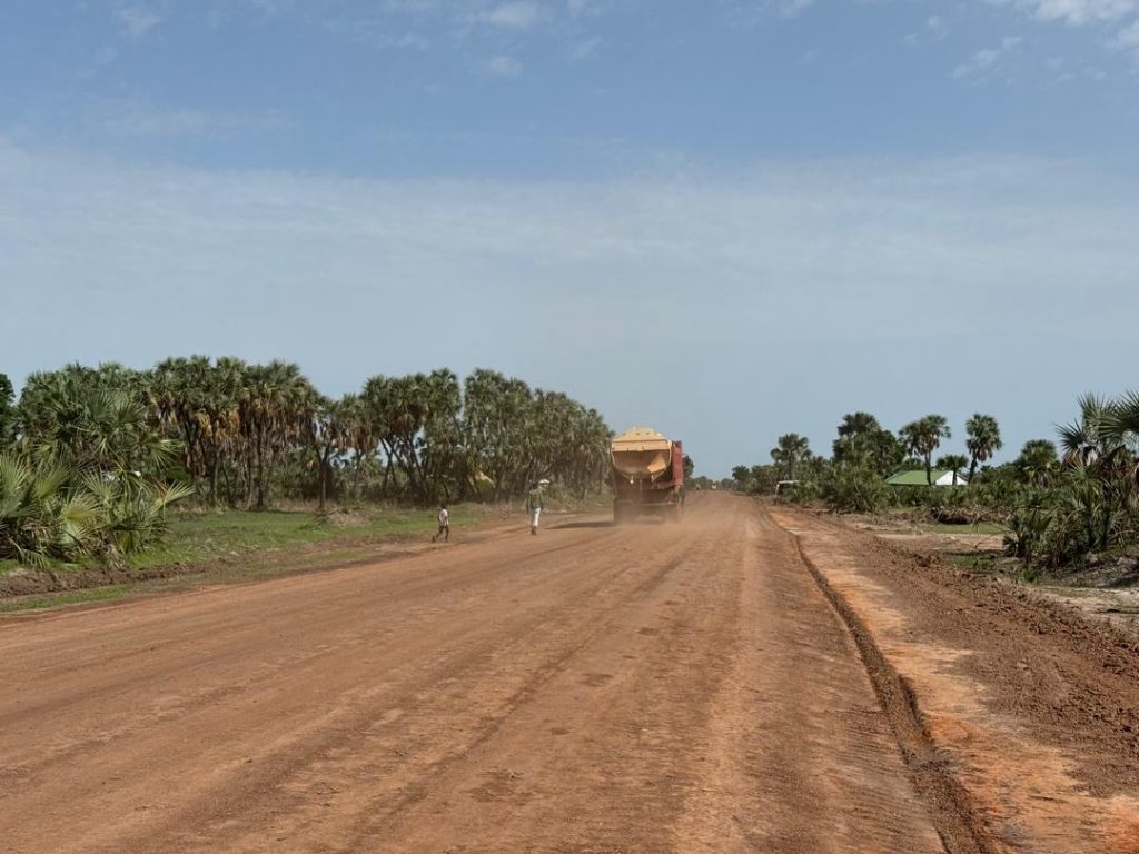 To manage water flow and prevent flooding, 370 meters of CMP culverts were supplied and installed, complemented by the excavation and placement of a 33 km long 500mm thick embankment. The surface was upgraded with multiple layers of gravel wearing courses, including a 150mm thick gravel layer covering 31 km and additional variation works in specific sections, culminating in a 6 km overlay of a 5mm thick wearing course.